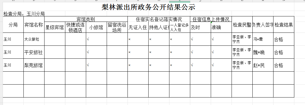 玉川分局梨林派出所行政检查-2026年2月份宾旅馆检查情况登记