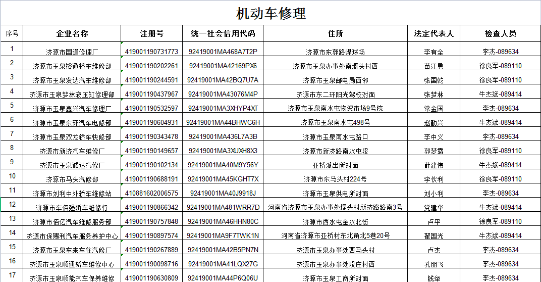 虎岭分局玉泉派出所“双随机、一公开”-2022年2月份机动车修理业检查情况登记表