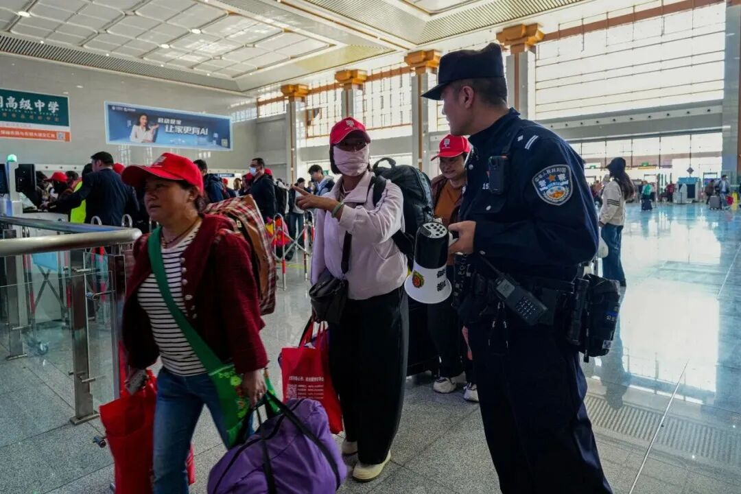 2月22日12时10分,汽笛长鸣,C346次列车载着140名云南保山务工人员的期盼,也载着铁路民警的守护,缓缓驶出车站。